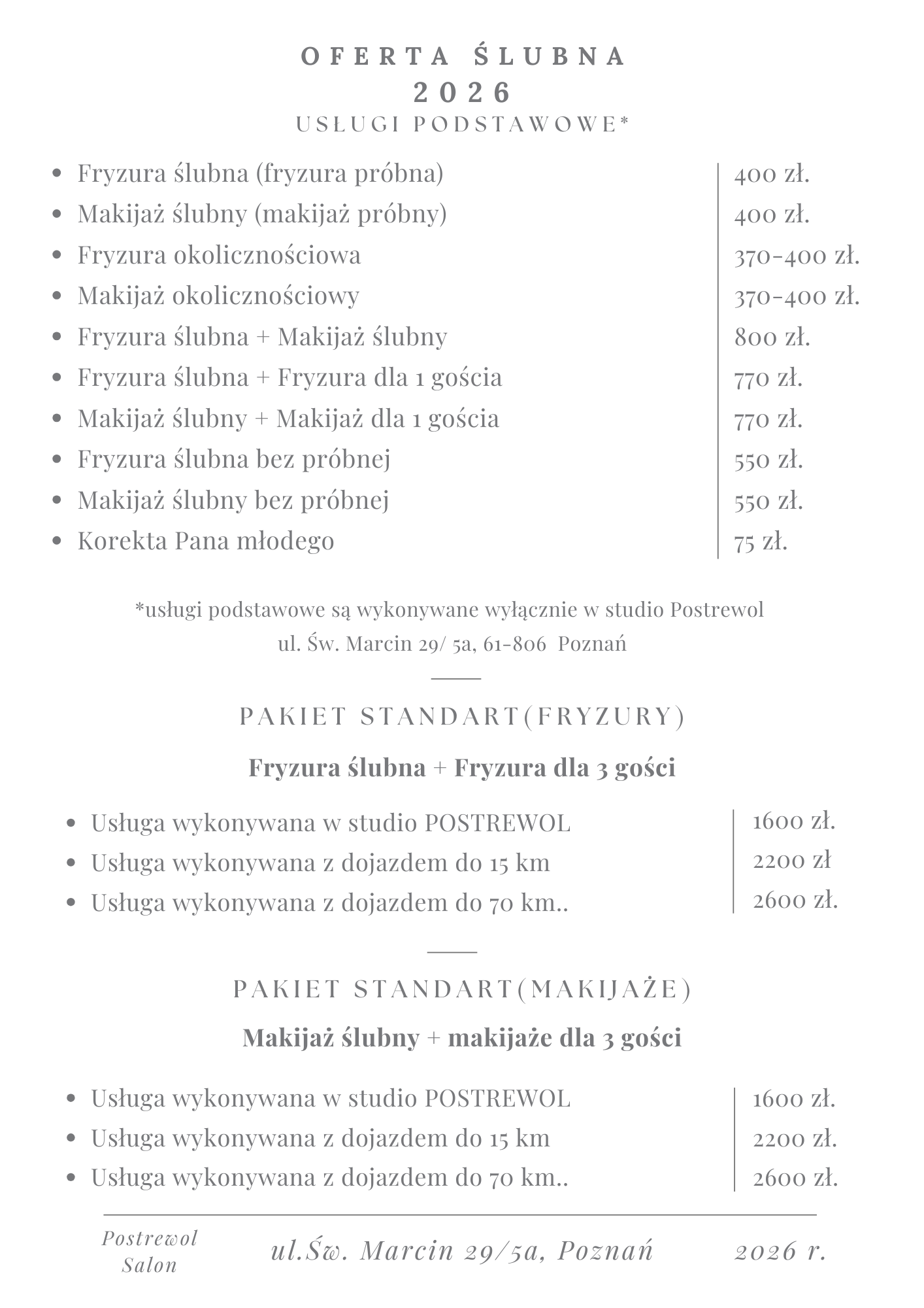 - makijaż ślubny bez próby - 550 zł